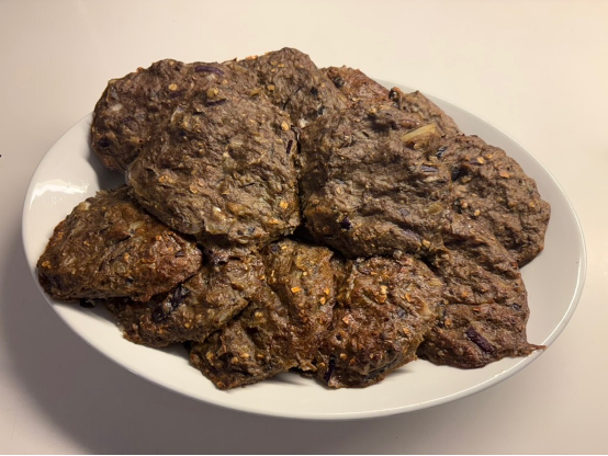 Jauhemaksapihvit uunissa paistettuna. Maku erinomainen. Paistinpannulla paistamalla niistä olisi saanut paremman näköisiä.