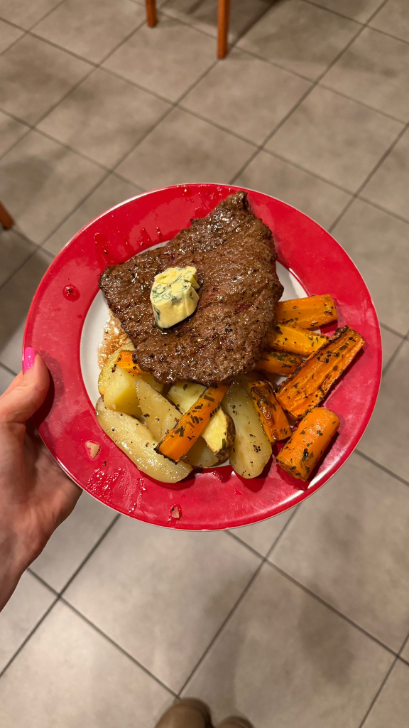 Päivällisellä oli karjalanpaistia. Keitin sitä eilen kuusi tuntia ja tänään vielä kaksi lisää.
