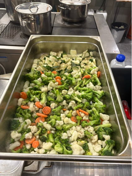 Lisukkeena oli perunamuusin ja riisin kanssa pakastevihanneksia. Todella hyvä ja edullinen tapa tarjota terveellistä kukka- ja parsakaalia. valitsemassani pakkauksessa oli porkkanaa 10%. Lisäsin mukaan kesäkurpitsakuutioita ja maustoin koko setin suolalla ja meiramilla.
